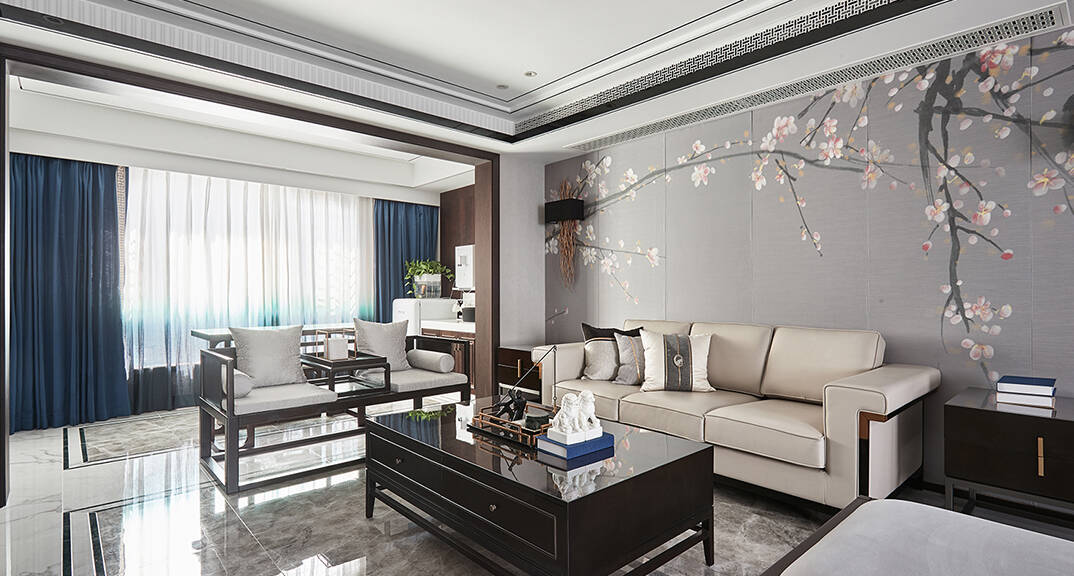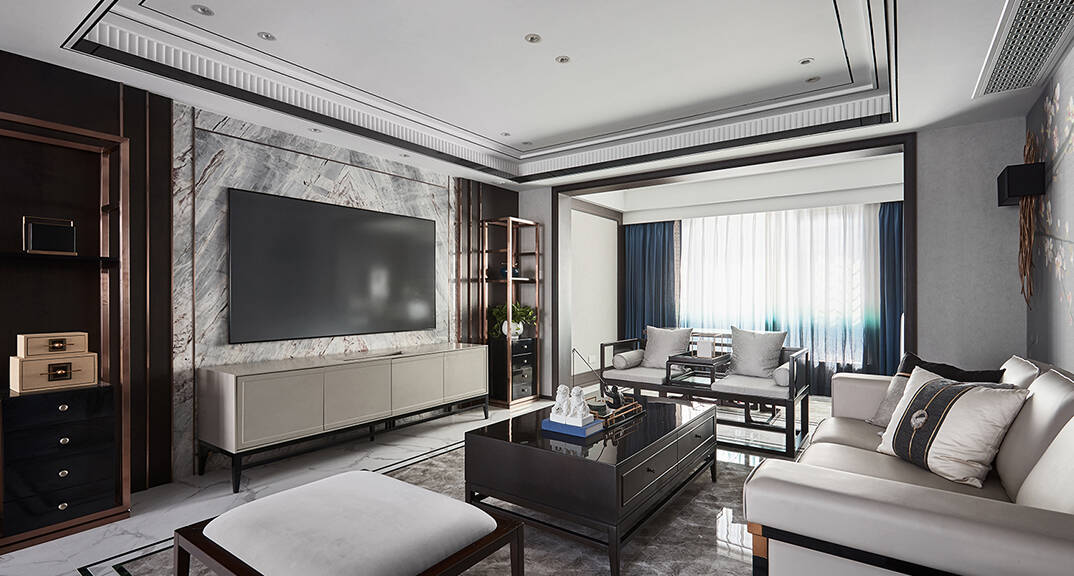 恒大·金沙灘 320㎡ 別墅 新中式風(fēng)格客廳裝修效果圖