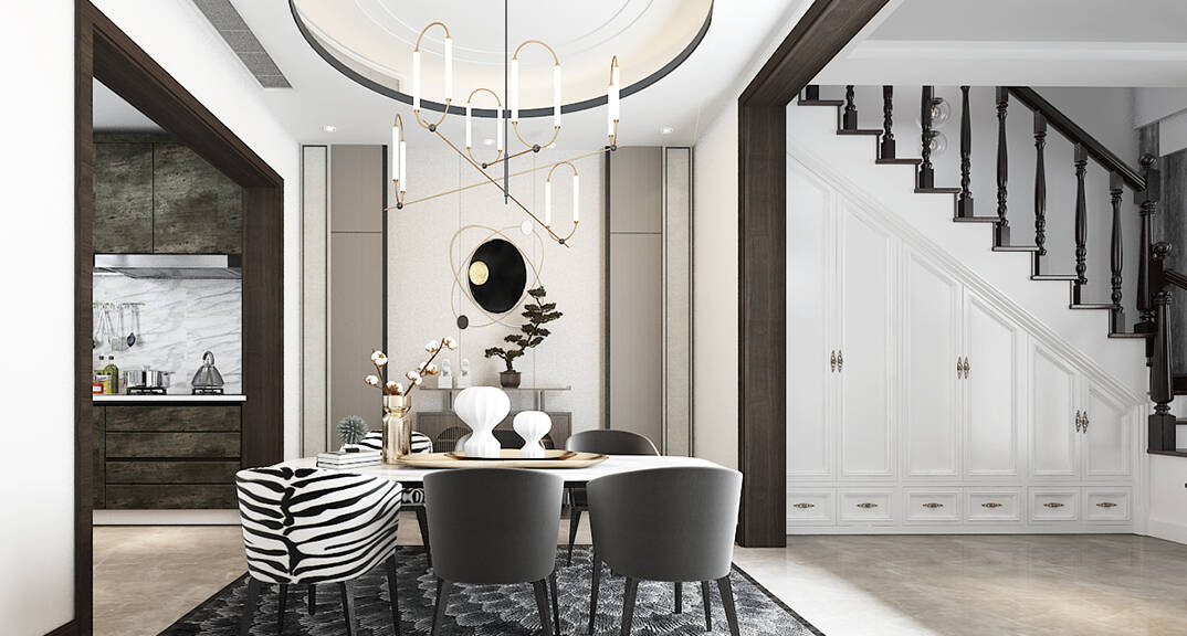 新中式風(fēng)格的餐廳巧妙的融合古典元素與現(xiàn)代元素,不僅滿足了現(xiàn)代人對(duì)古典的追求,還緊跟現(xiàn)代潮流的步伐,去除繁復(fù)的裝飾,于細(xì)節(jié)處下筆,設(shè)計(jì)風(fēng)格莊重而內(nèi)斂,給人溫馨、明亮、潔凈的視覺感受。