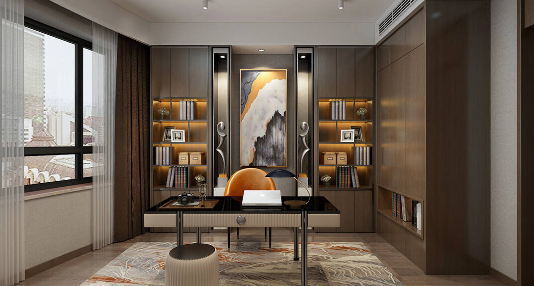 燕島國際270㎡四室兩廳書房現(xiàn)代風(fēng)格裝修案例效果圖