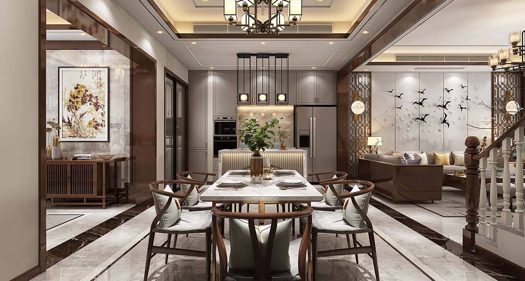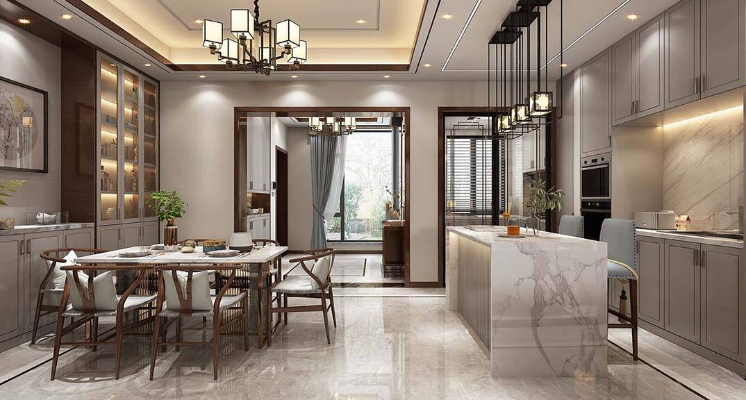 每個家庭的裝修中都需要擁有功能性的設計,這也是一個家居裝修中最主要的目的。新中式風格的設計理念也體現(xiàn)出了功能性的設計。比如西餐廳加入大理石島臺的設計,既體現(xiàn)其視覺上的美感,又具有實用性。