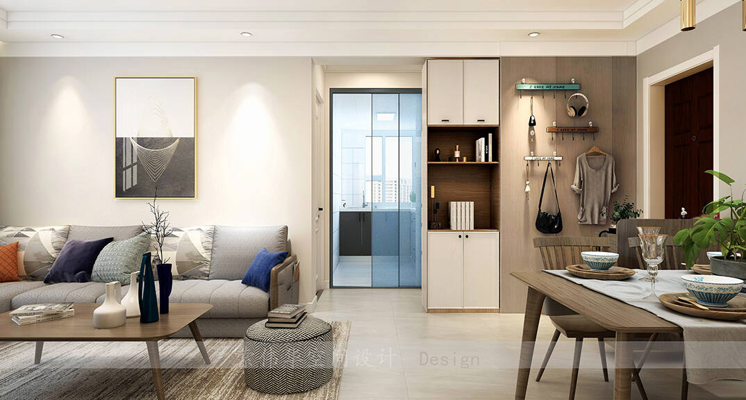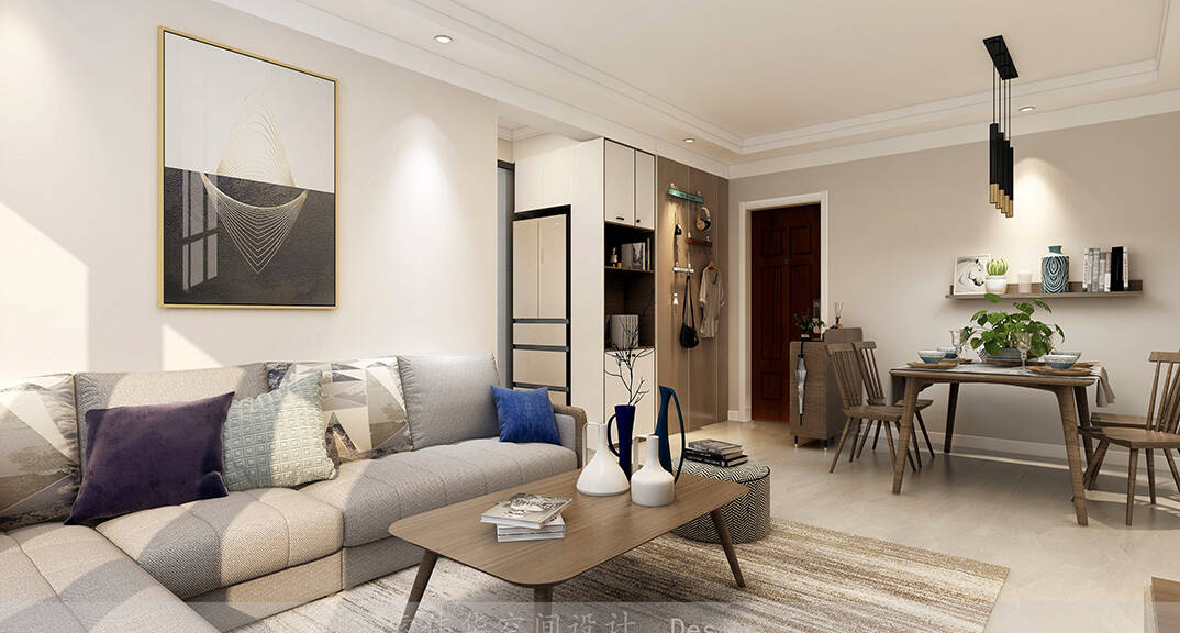 軟裝家具在色彩及材質(zhì)上為設(shè)計(jì)加分,而定制柜子既美觀又可以增加收納空間,整體裝飾性與實(shí)用性兼得。客廳舒適而放松,設(shè)計(jì)師為背景墻披上溫和的色調(diào),配合精心選擇的裝飾掛畫,整體和諧地衍生出一種高級感。