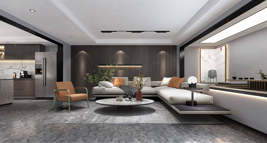 三盛國(guó)際海岸140㎡下疊客廳現(xiàn)代風(fēng)格裝修案例效果圖