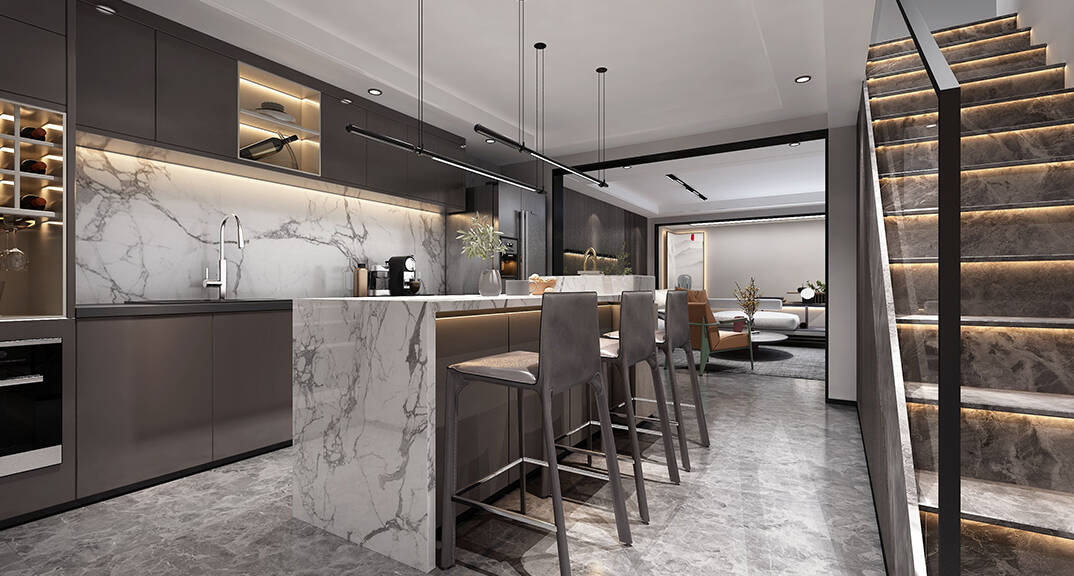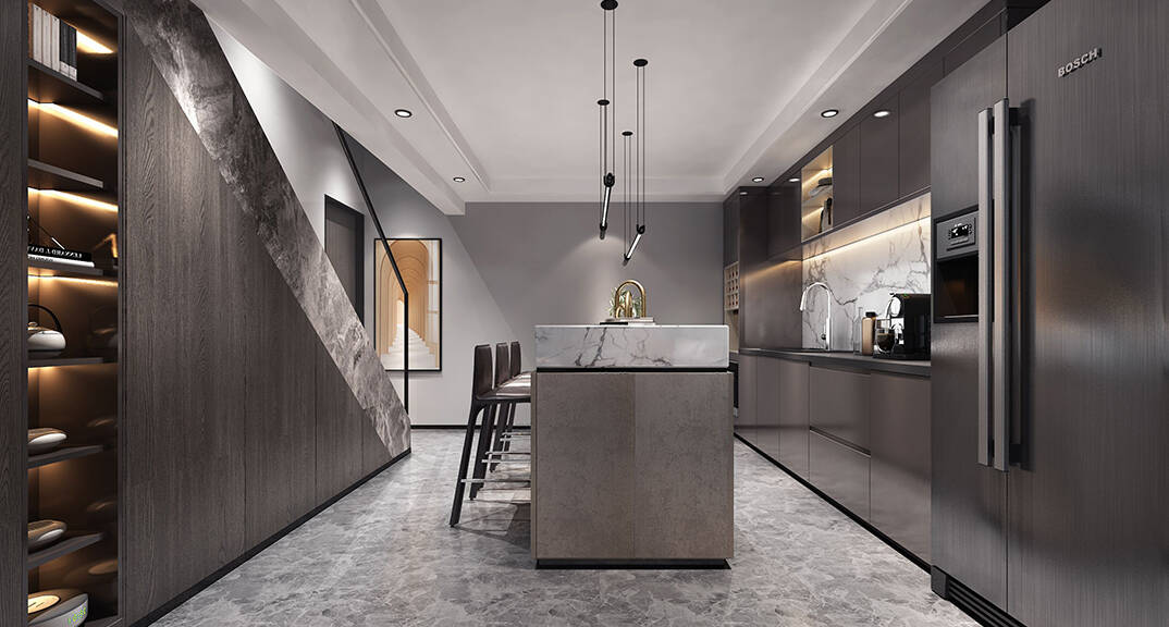 三盛國(guó)際海岸140㎡下疊餐廳現(xiàn)代風(fēng)格裝修案例效果圖