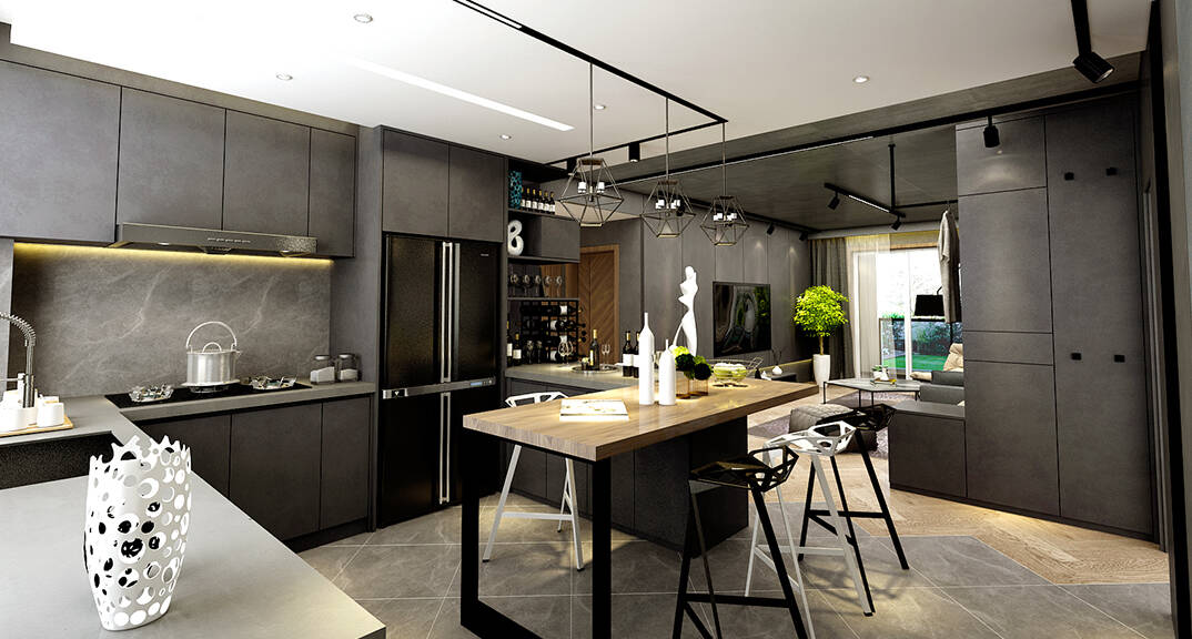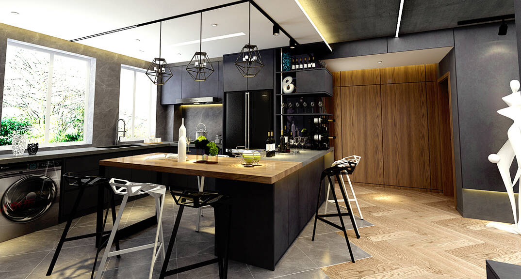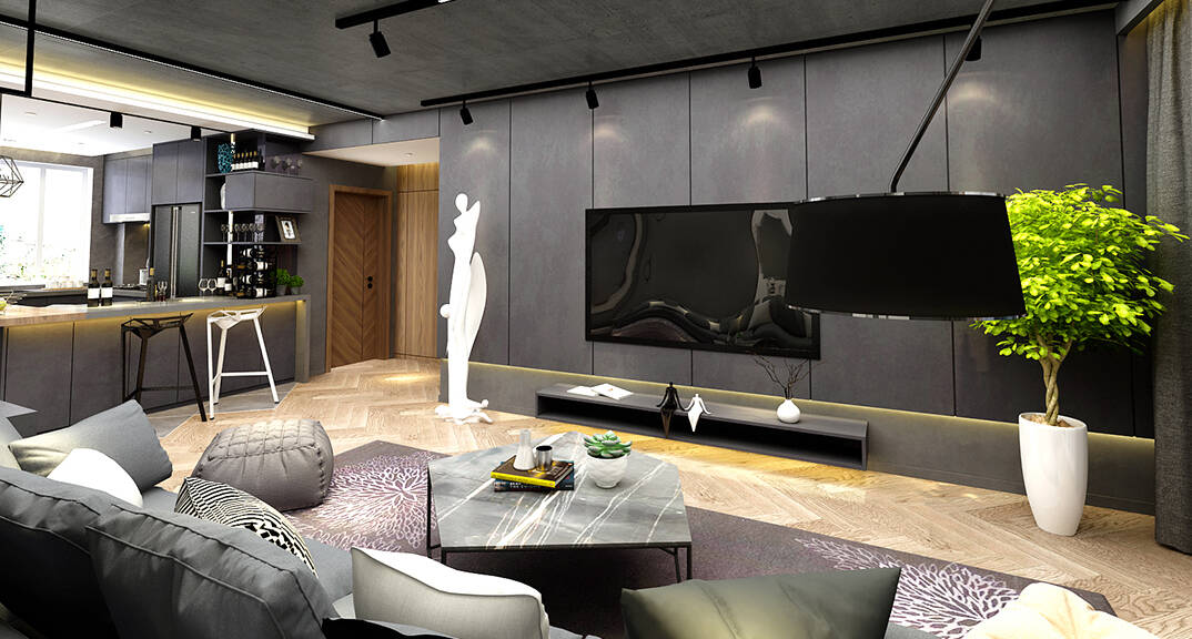 云龍港灣115㎡平層現(xiàn)代工業(yè)風格裝修案例效果圖