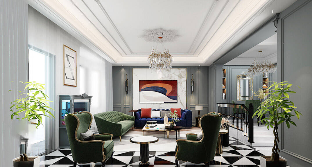 荷塘月色320平別墅輕奢風(fēng)格裝修-客廳