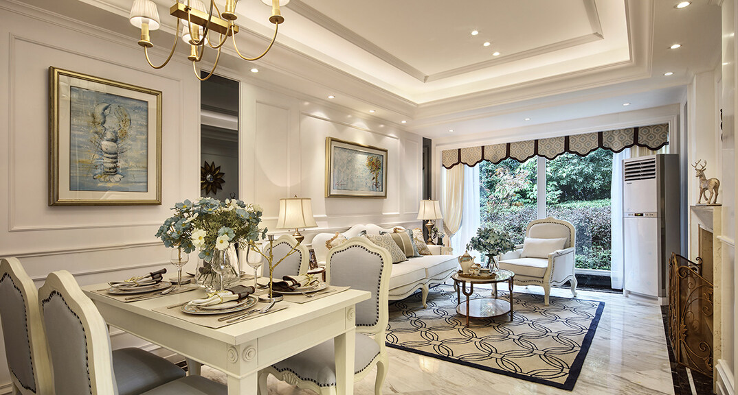 桃李芳菲2室2廳1廚2衛(wèi)126㎡客餐廳美式風(fēng)格裝修效果圖