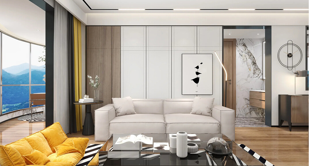 文鼎苑140㎡三室一廳客廳現(xiàn)代簡(jiǎn)約風(fēng)格裝修案例效果圖