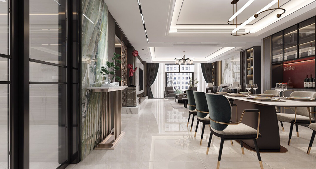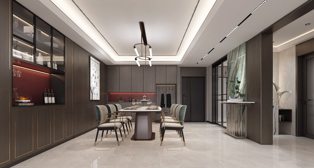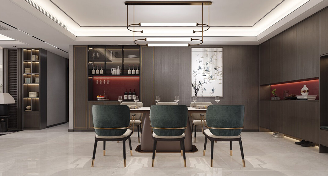 綠城·海棠印月166㎡三室二廳餐廳新中式風格裝修案例效果圖