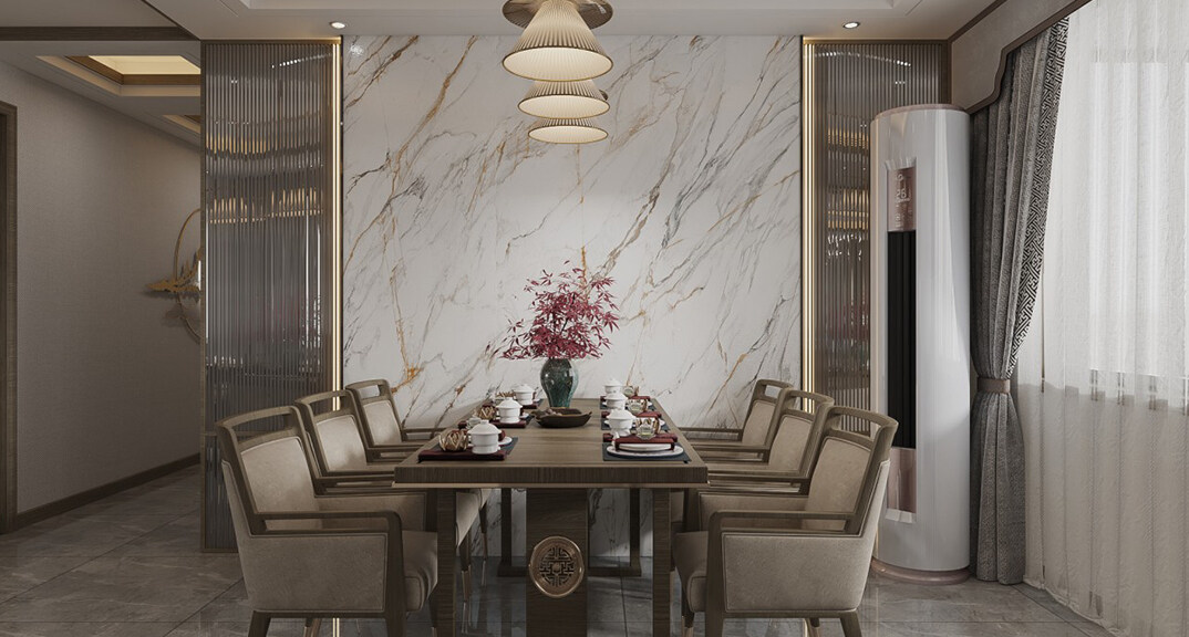 綠城曉峰湖畔130㎡三室二廳餐廳新中式輕奢風(fēng)格裝修案例效果圖