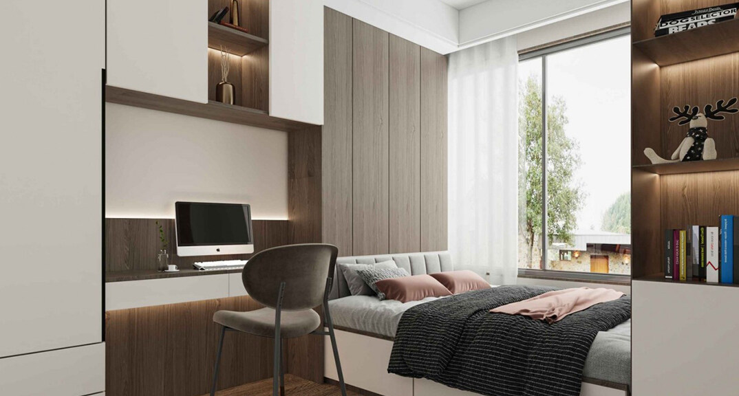 綠城曉峰湖畔130㎡三室二廳臥室新中式輕奢風(fēng)格裝修案例效果圖
