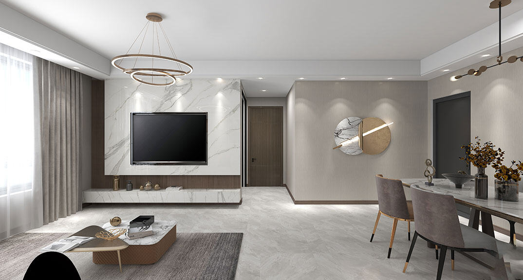 金地·錦宸110㎡三室一廳客廳現(xiàn)代簡約風(fēng)格戶型研發(fā)案例效果圖