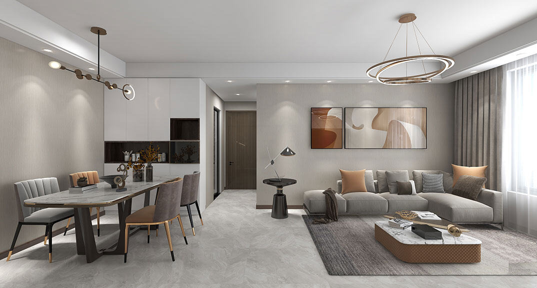 金地·錦宸110㎡三室一廳客餐廳現(xiàn)代簡約風(fēng)格戶型研發(fā)案例效果圖
