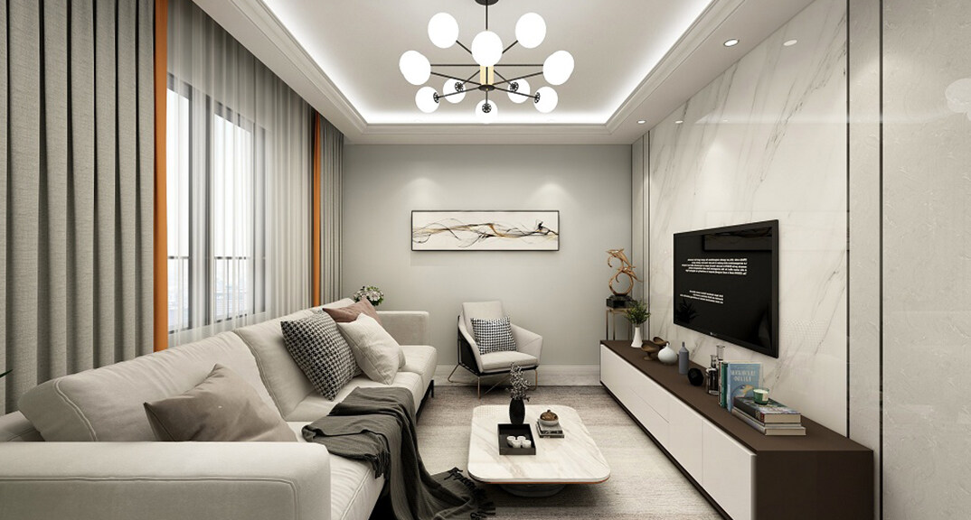 海博雅苑98㎡二室二廳客廳電視現(xiàn)代簡約風(fēng)格裝修案例效果圖