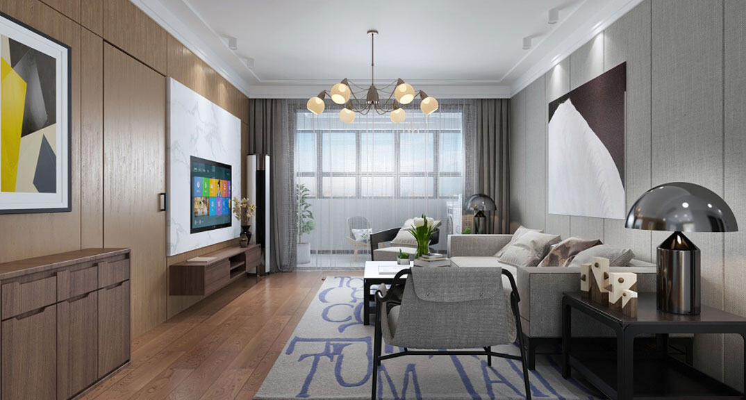 青鋼小鎮(zhèn)140㎡三室二廳客廳電視現(xiàn)代風格裝修案例效果圖