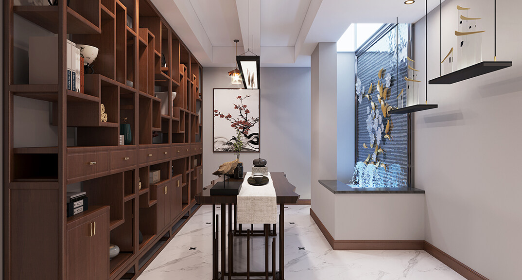 紫荊閣150㎡別墅下疊書房新中式風格裝修案例效果圖