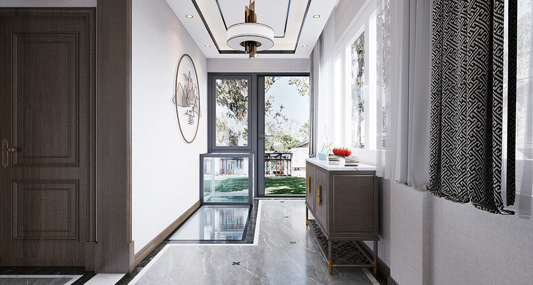 紫荊閣150㎡別墅下疊入戶玄關新中式風格裝修案例效果圖