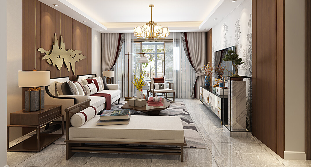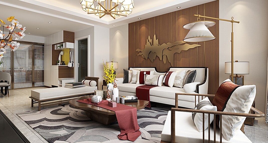 天寧首府128㎡三室兩廳客廳新中式風格裝修案例效果圖