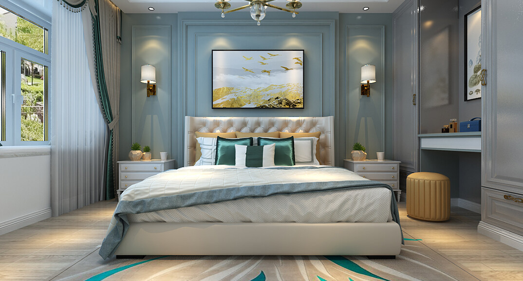 壹號學(xué)府132㎡三室兩廳主臥美式風(fēng)格裝修案例效果圖