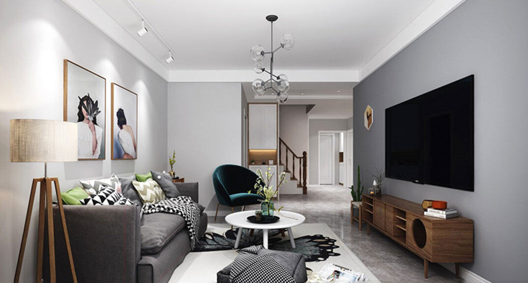 沙墩生活區(qū)130㎡復(fù)式客廳北歐風格裝修案例效果圖