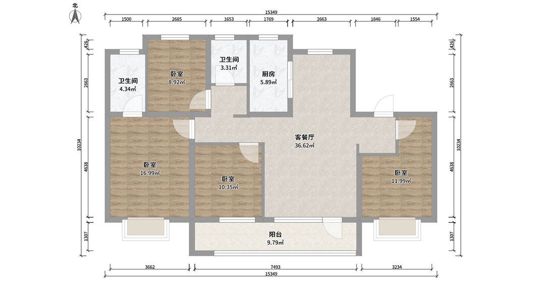 依云四季138㎡四室兩廳戶型平面布局圖