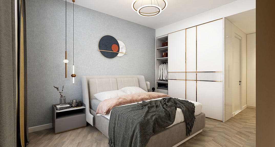 依云四季108㎡三室兩廳臥室現(xiàn)代簡約風格裝修案例效果圖