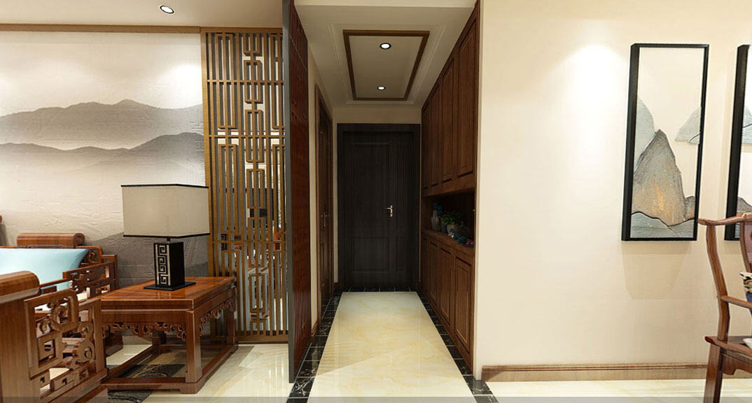 市直三區(qū)160㎡三室兩廳走廊中式風(fēng)格裝修案例效果圖