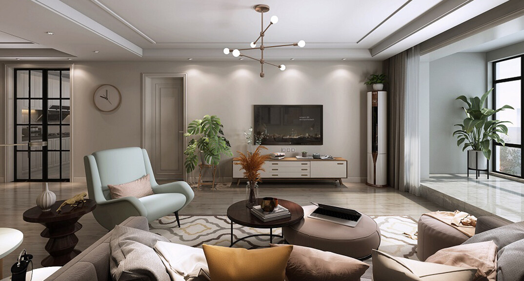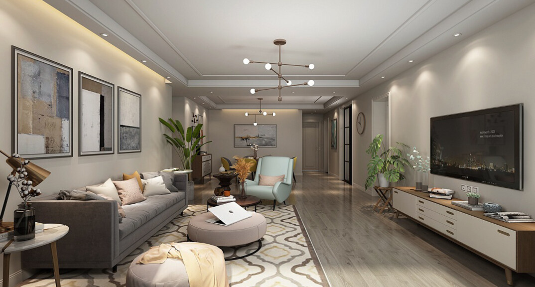海信半山蘭亭116㎡三室兩廳客廳現(xiàn)代簡約風格裝修案例效果圖