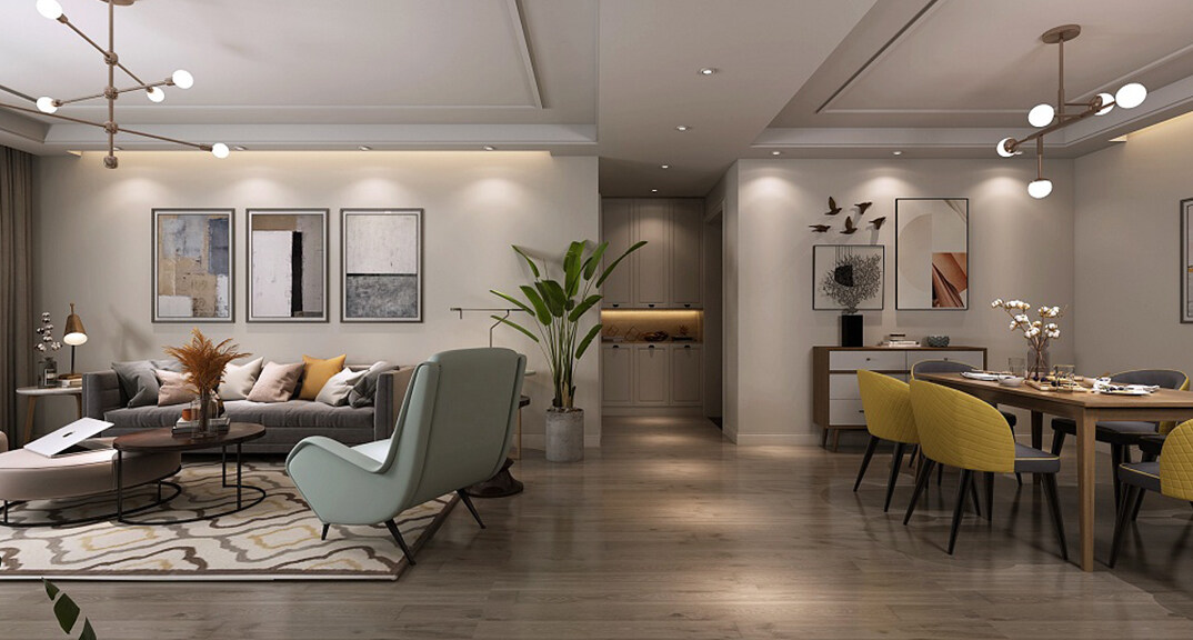 海信半山蘭亭116㎡三室兩廳客餐廳現(xiàn)代簡約風格裝修案例效果圖