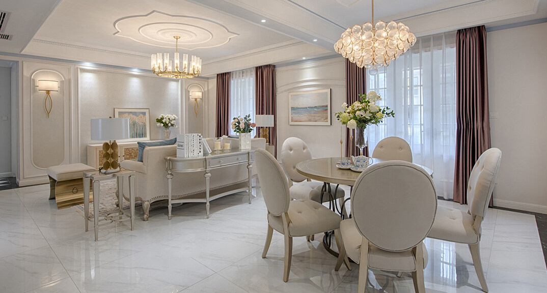 青特星城119㎡三室兩廳客餐廳簡(jiǎn)歐風(fēng)格裝修案例效果圖