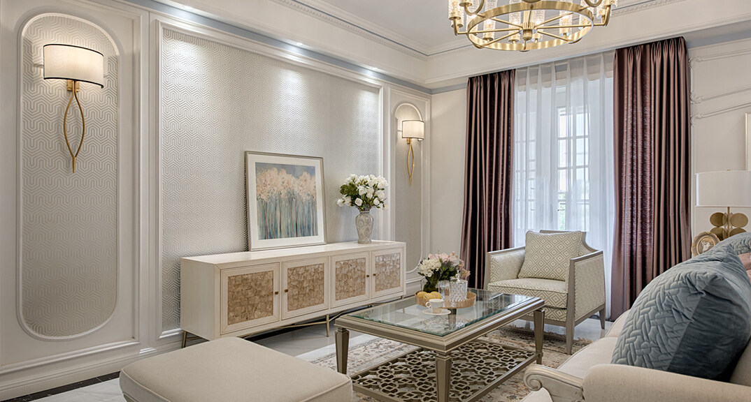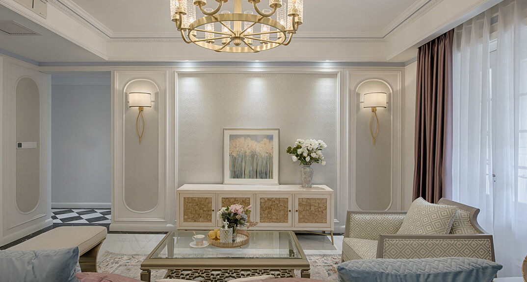 青特星城119㎡三室兩廳客廳簡(jiǎn)歐風(fēng)格裝修案例效果圖