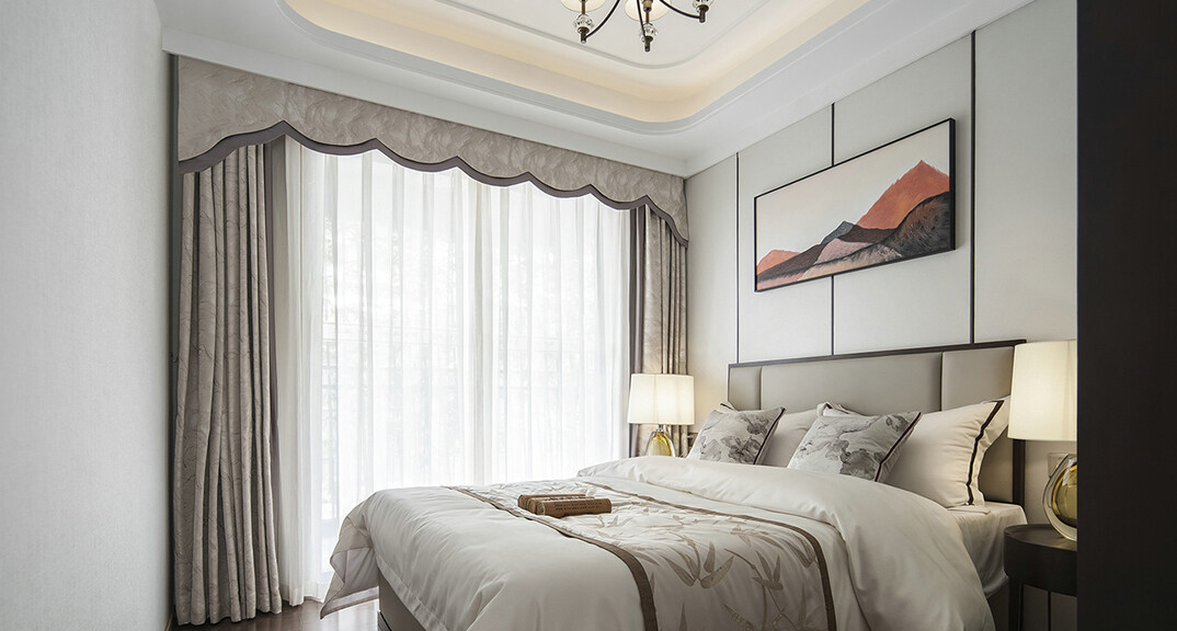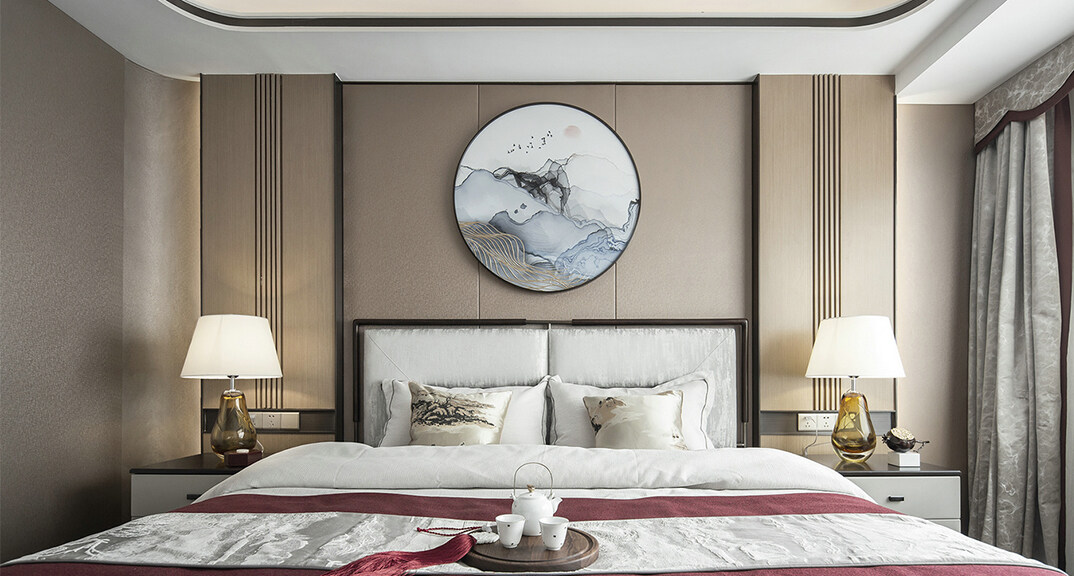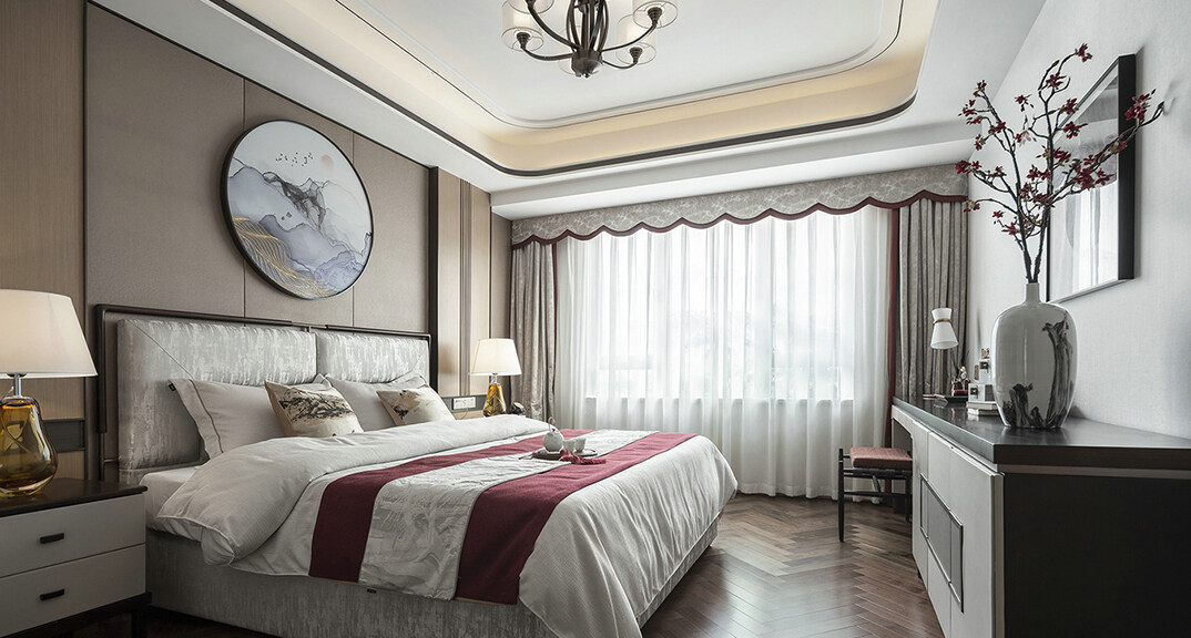 青特星城142㎡三室兩廳主臥新中式風格裝修案例效果圖