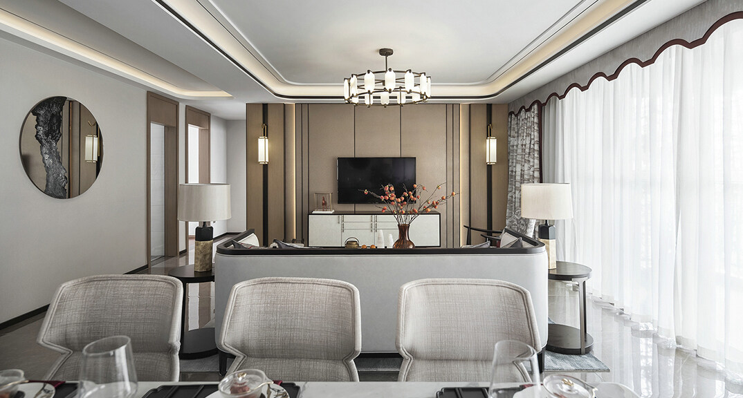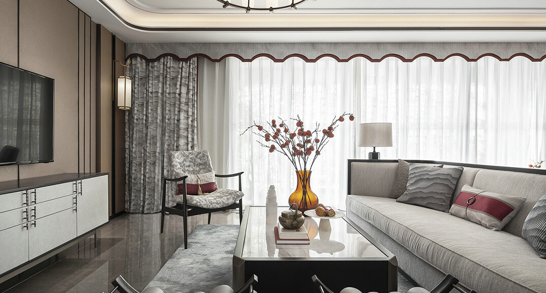 青特星城142㎡三室兩廳客廳新中式風格裝修案例效果圖