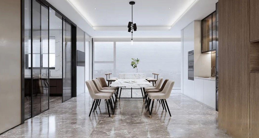 日鋼綠城300㎡別墅餐廳現(xiàn)代輕奢風格裝修案例效果圖