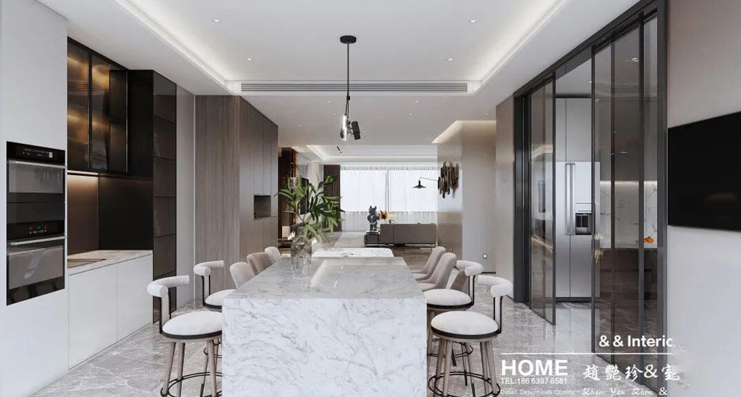 日鋼綠城300㎡別墅客餐廳現(xiàn)代輕奢風格裝修案例效果圖