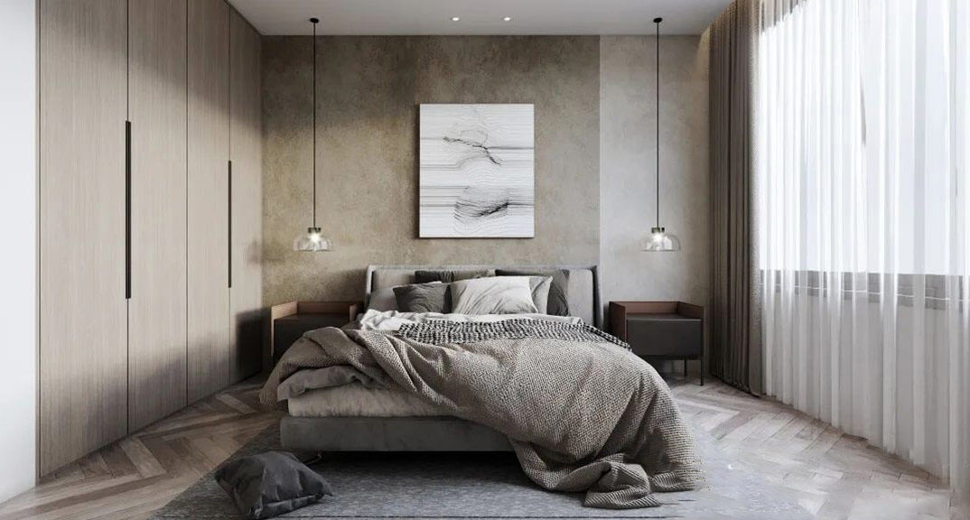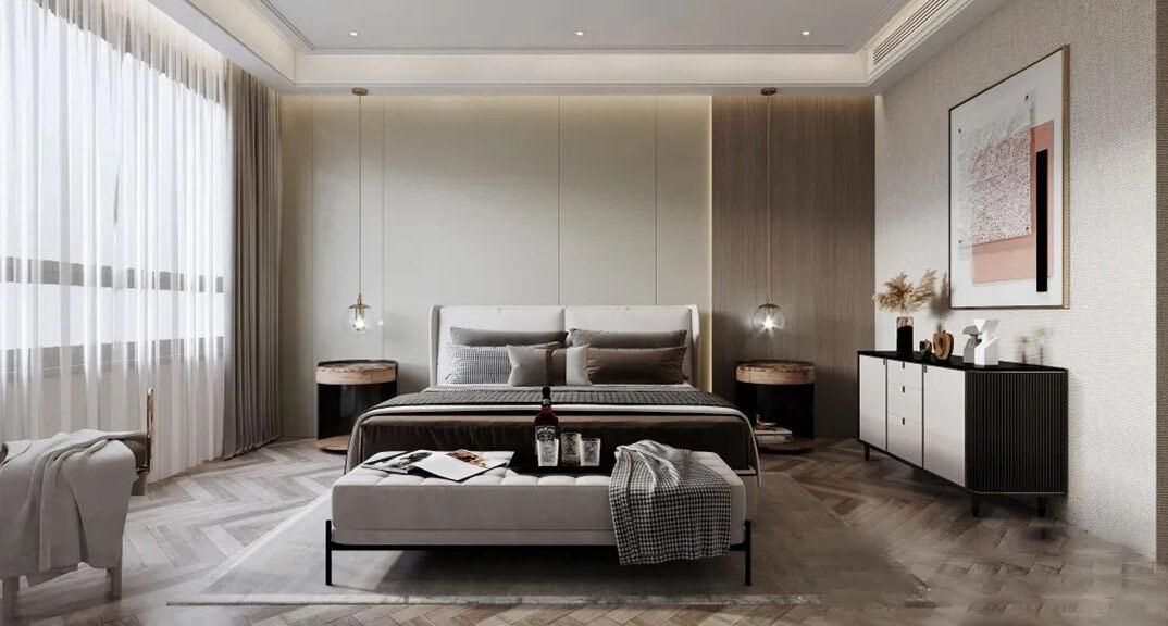 日鋼綠城300㎡別墅主臥現(xiàn)代輕奢風格裝修案例效果圖