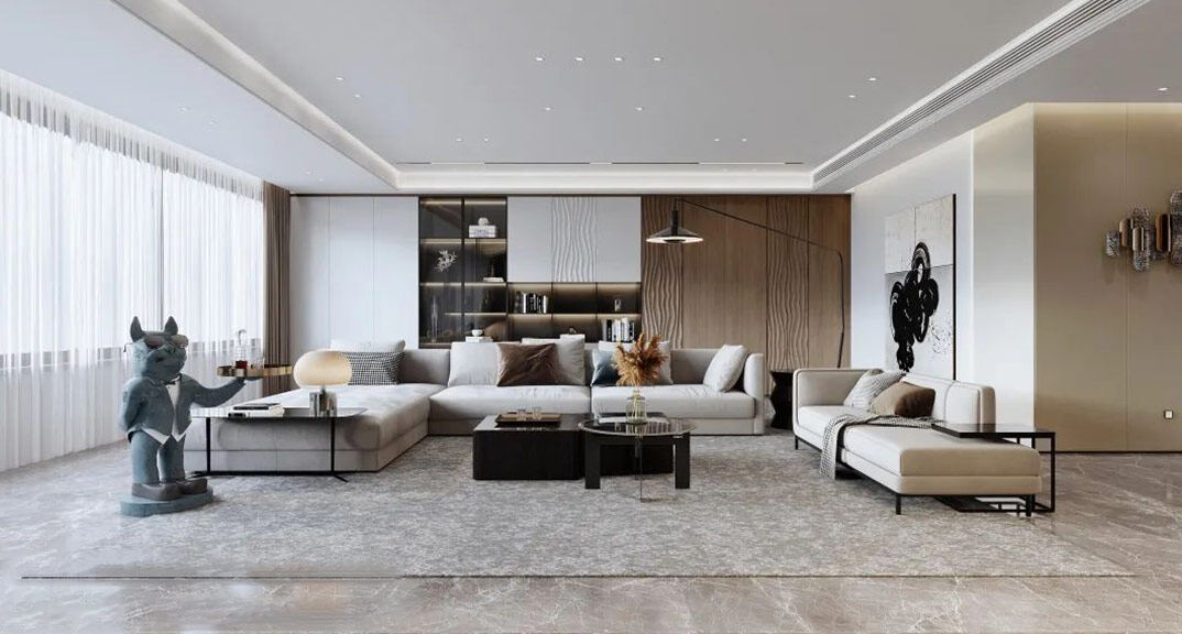 日鋼綠城300㎡別墅客廳沙發(fā)現(xiàn)代輕奢風格裝修案例效果圖