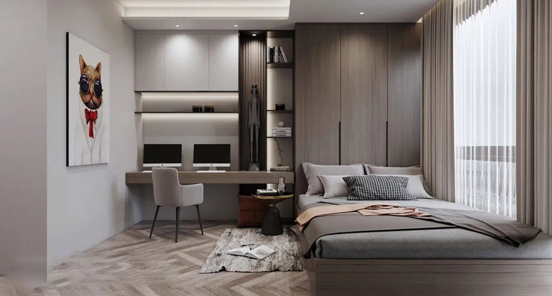 日鋼綠城300㎡別墅次臥現(xiàn)代輕奢風格裝修案例效果圖