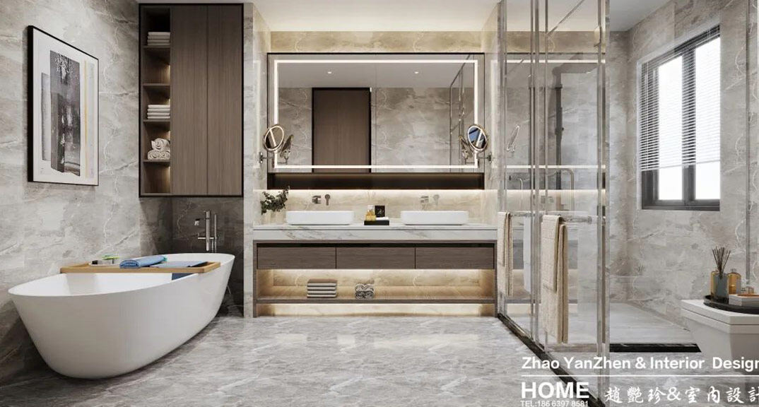 日鋼綠城300㎡別墅衛(wèi)生間現(xiàn)代輕奢風格裝修案例效果圖