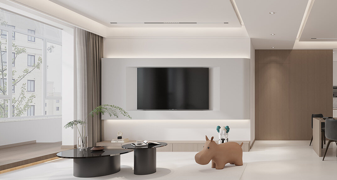 東岸世家167㎡三室兩廳客廳電視現(xiàn)代極簡(jiǎn)風(fēng)格裝修案例效果圖