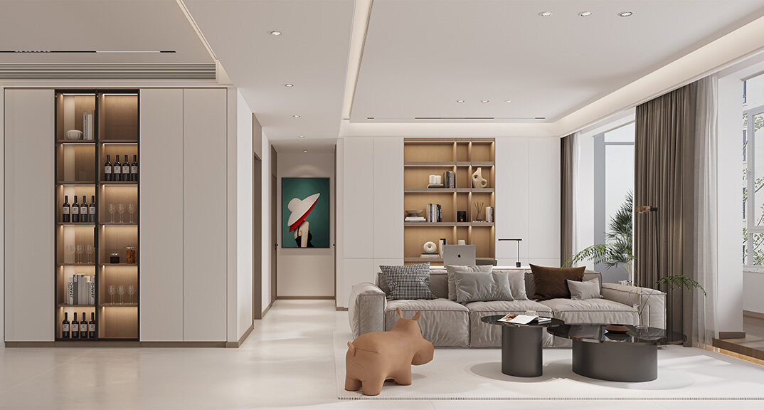 東岸世家167㎡三室兩廳客廳現(xiàn)代極簡(jiǎn)風(fēng)格裝修案例效果圖