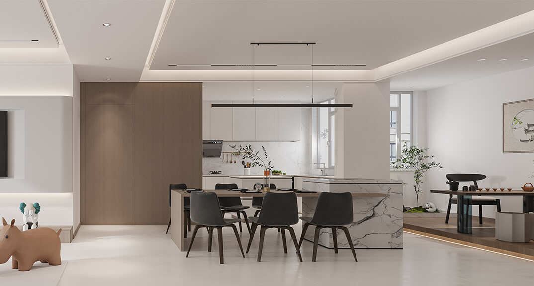 東岸世家167㎡三室兩廳客餐廳現(xiàn)代極簡(jiǎn)風(fēng)格裝修案例效果圖