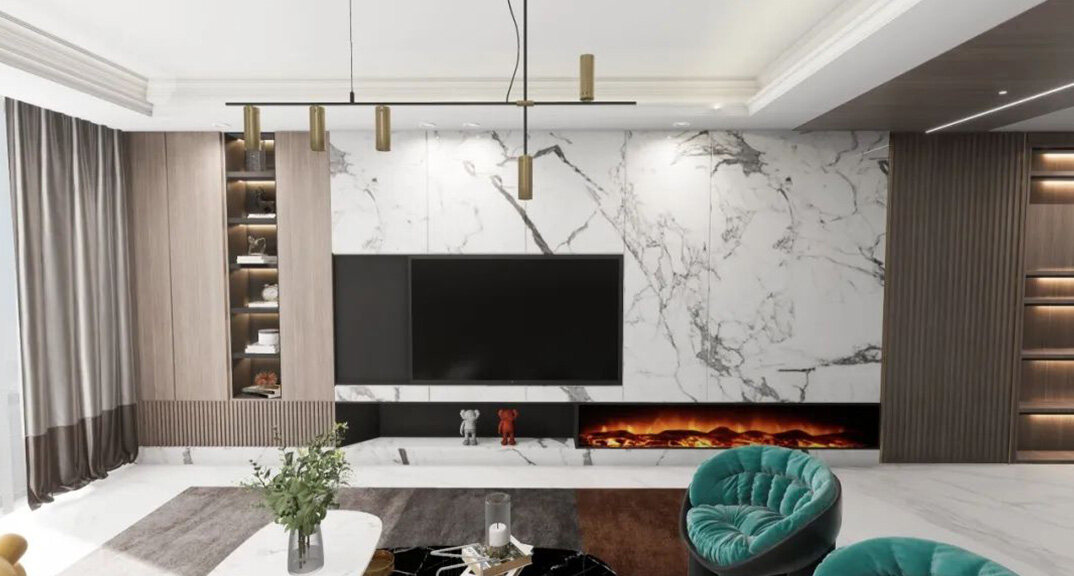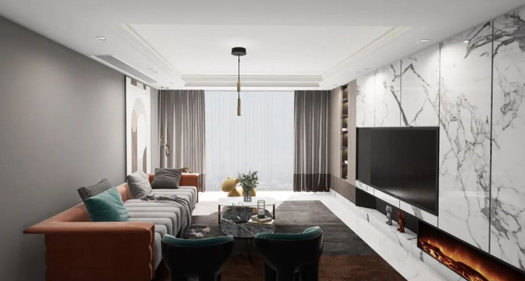 白鷺灣214㎡別墅客廳電視現(xiàn)代輕奢風(fēng)格裝修案例效果圖