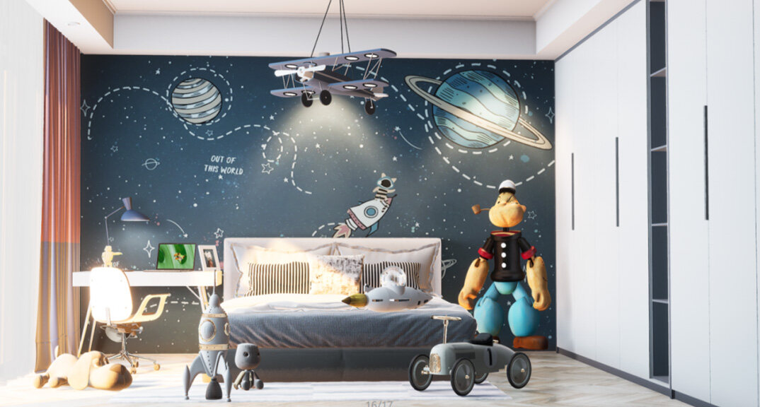 白鷺灣214㎡別墅兒童房現(xiàn)代輕奢風(fēng)格裝修案例效果圖