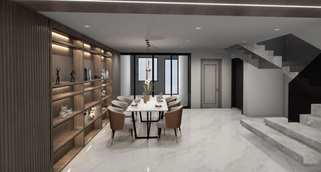 白鷺灣214㎡別墅餐廳現(xiàn)代輕奢風(fēng)格裝修案例效果圖