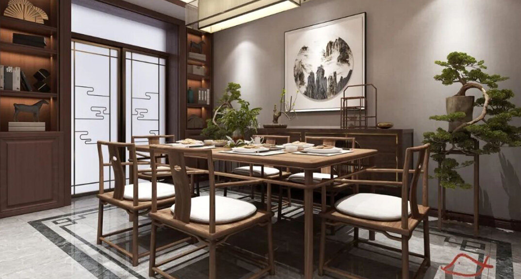 北海錦華352㎡別墅餐廳新中式風格裝修案例效果圖