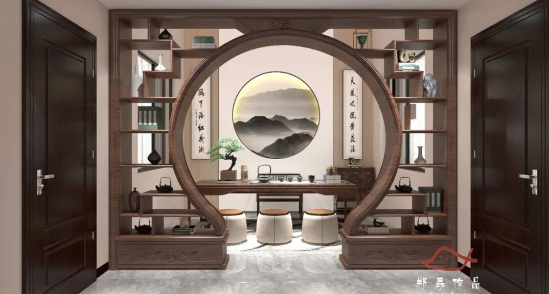北海錦華352㎡別墅茶室新中式風格裝修案例效果圖