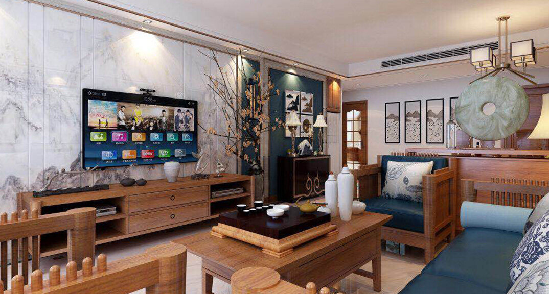 魯潤靜園156㎡三室兩廳客廳電視簡(jiǎn)約中式風(fēng)格裝修案例效果圖