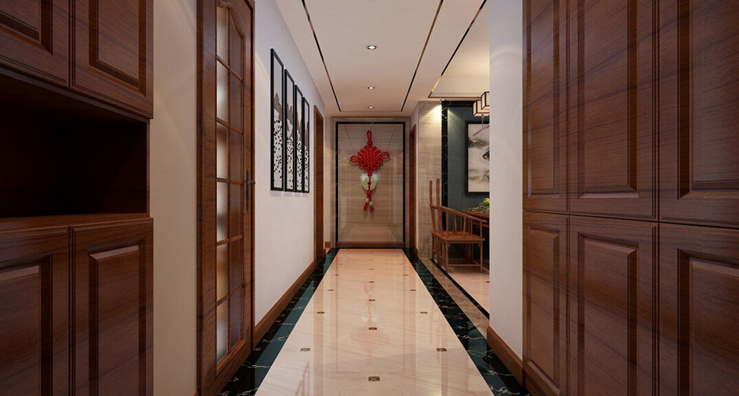 魯潤靜園156㎡三室兩廳走廊簡(jiǎn)約中式風(fēng)格裝修案例效果圖
