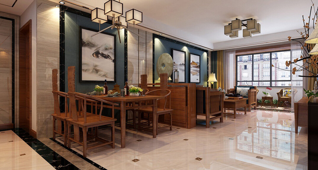 魯潤靜園156㎡三室兩廳餐廳簡(jiǎn)約中式風(fēng)格裝修案例效果圖