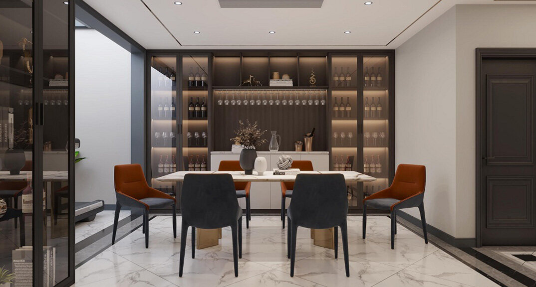泰和郡338㎡聯(lián)排別墅餐廳美式輕奢風格裝修案例效果圖